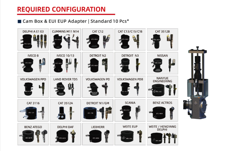Pruebas EUI / EUPInyectores y Bombas Unitarias con Cambox y adaptadores incluidos.