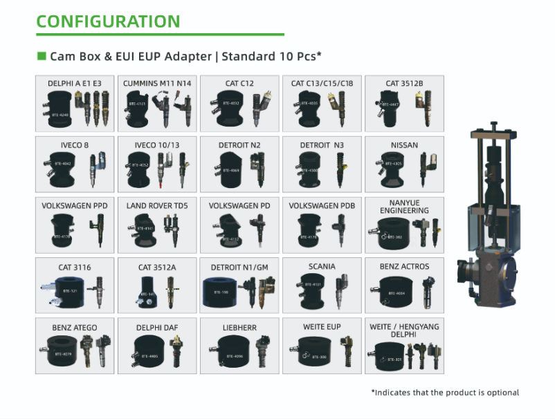 | EUI (Inyector Bomba) | • Bosch: Volvo, Scania, Iveco (UIS) • Delphi: E1, E3 (Volvo/Mack/Renault) • Caterpillar: C10, C12, C15, 3406E (Mecánico-Electrónico) • Cummins: Celect N14, M11 |
